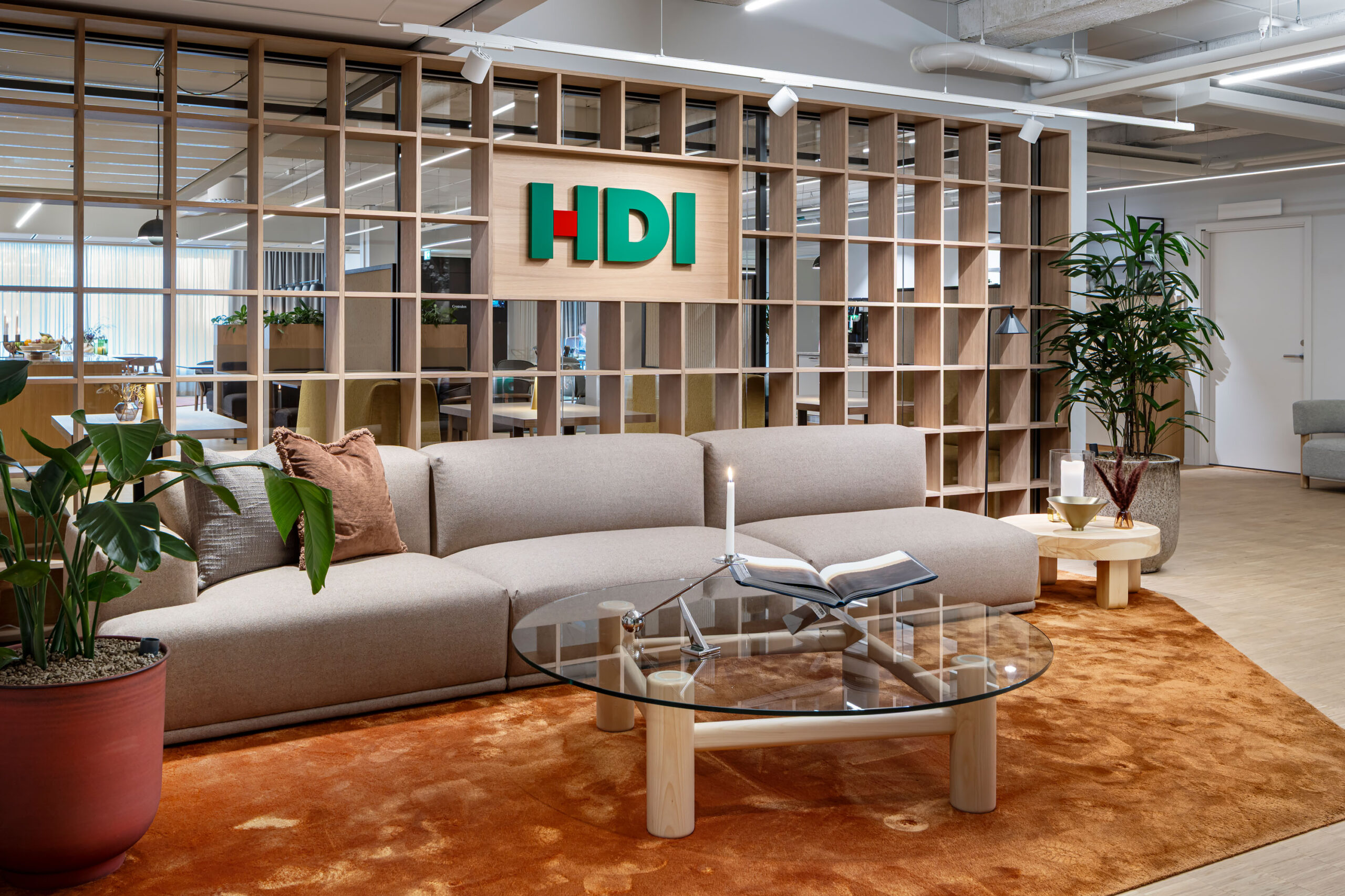 Redan i entrén möts man av den stämning som präglar HDI:s nya kontor, en miljö som förmedlar professionalism och omtanke på samma gång. Här har företagets värdeord fått ta fysisk form i arkitekturen: Reliable, Entrepreneurial och Caring.