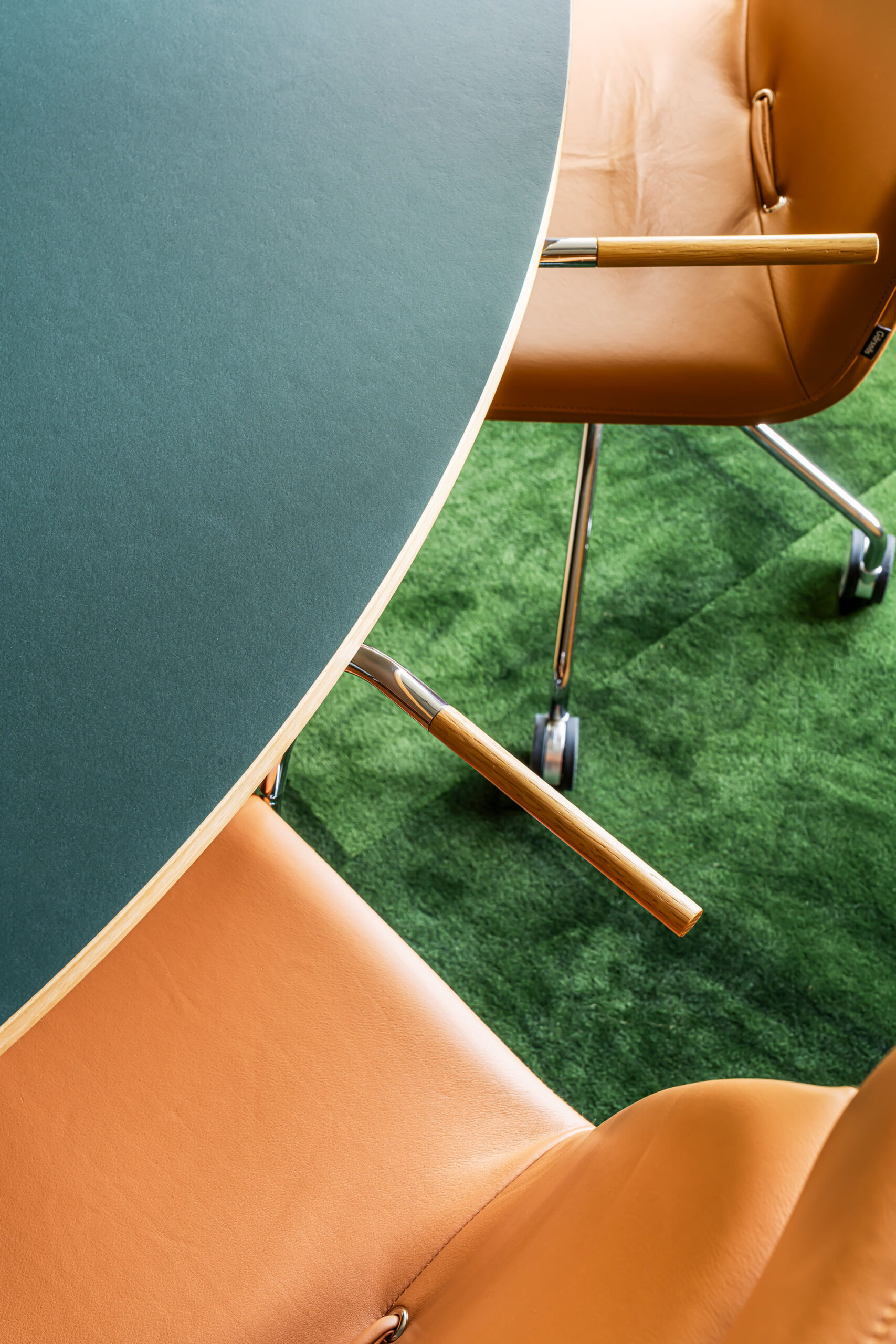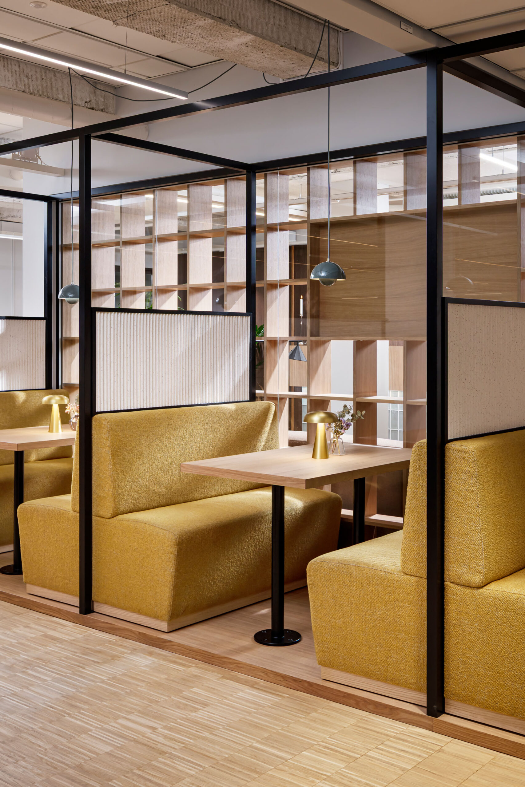 De sociala ytorna är placerade i centrum, skapade för att uppmuntra möten, samtal och gemenskap. Runt dem växer arbetsmiljöer fram som stödjer ett modernt och flexibelt arbetssätt. Genom att återbruka befintliga element som belysning, dörrportaler och andra moduler har lokalerna dessutom fått nytt liv på ett resurseffektivt sätt.